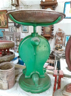 เครื่องชั่งโบราณ เหล็กหล่อ มีน้ำหนัก ขนาดสูง40ซม โดยทั่วไปจะไม่มีถาดวางชั่งมาด้วย เนื่องจากชำรุดเสียหายไปก่อนตามกาลเวลา ตัวนี้สปริงฝืดนิด ต้องฉีดนำมันหล่อลื่นก่อนนำไปใช้ครับ