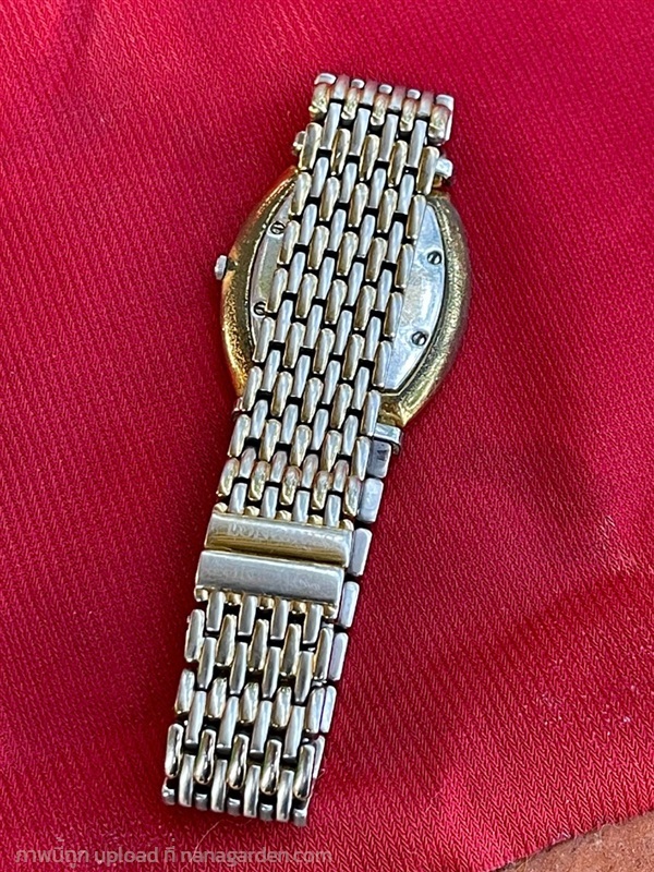 นาฬิกาวินเทจ ยุโรป สวิส หน้าปัดสีขาวเปลือกหอยมุก กระจกแซฟไฟล์ กันน้ำ โลหะสตีล ทรง Tonneau ขนาด36mm. บางเฉียบ5mm.