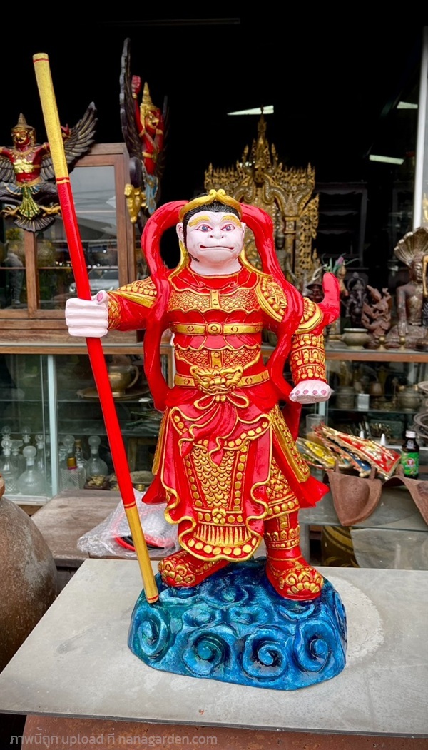 เปิดบูชา เทพเห้งเจียไม้สักทองแกะสลัก ลงสี สภาพสวยสมบูรณ์ ขนาดสูงรวม65x35cm สำหรับบูชาในห้องพระห้องทำงาน เสริมบารมี ปรับฮวงจุ้ย