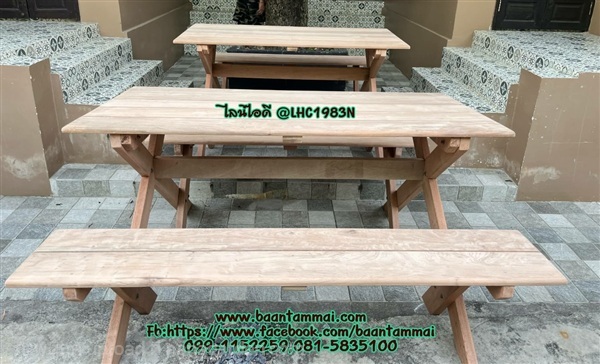 รับผลิต และ จำหน่ายโต๊ะไม้เนื้อแข็ง ขาไม้และขาเหล็ก ใช้กลางแจ้งได้ สั่งผลิตตามขนาด ราคาตามจำนวนนะคะ เป็นงานผลิตตามขนาดนะคะ ชุดนี้ลูกค้าสั่งไม่ทำสีนะคะ