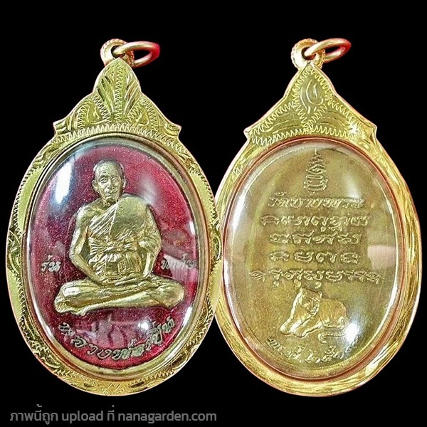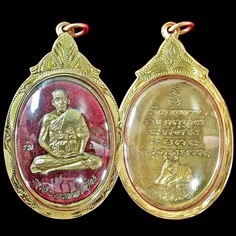 เหรียญหลวงพ่อเปิ่น รุ่นแรก วัดบางพระ อ.นครชัยศรี จ.นครปฐม ปี2519 เนื้อทองแดงลงยา (สีแดง) กะไหล่ทอง สภาพสวยเดิม