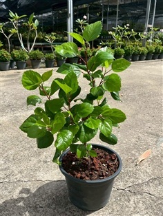 ใบ ใบเดี่ยว เรียงเวียนกึ่งสลับ รูปเกือบกลม หัวใจ หรือรูปไข่กว้าง ปลายใบแหลม โคนมนถึงตัด ขอบใบจักรลึก ใบค่อนข้างหนา คลายแผ่นหนัง เส้นโคนกลีบใบและเส้นกลางใบสีแดง