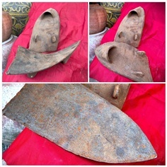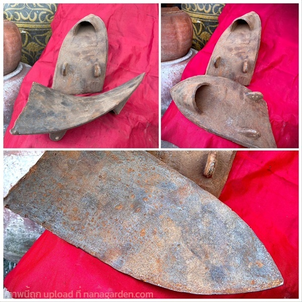 เหล็กติดคันไถนาสมัยก่อน สภาพสวยสมบูรณ์ เก่าเก็บ ไม่ผ่านการใช้งาน นิยมนำไปลงยันต์ และอักขระเสริมตามประเพณี เป็นสิริมงคล ไล่ผี ปัดเป่าสิ่งอัปมงคล