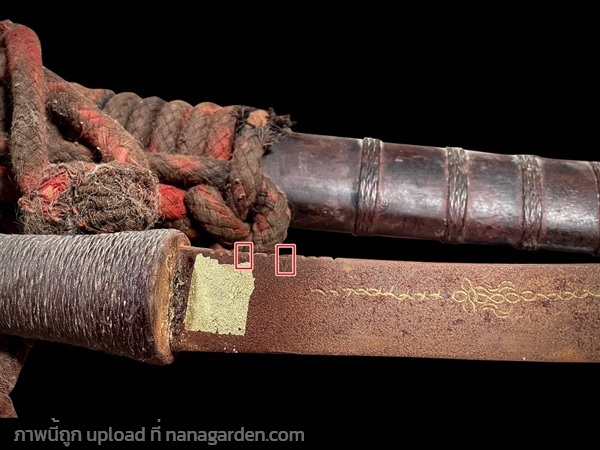 ดาบไทยโบราณ ดาบอยุธยา แสดงถึงงานสกุลช่างไทยสมัยก่อน ปลายแหลม มีรายละเอียดคมชัดสวย ฝังตะกรุดทองเหลือง เข้มขลัง มรดกตกทอดจากรุ่นสู่รุ่น