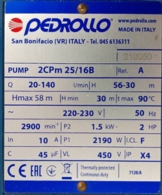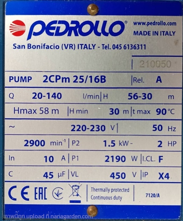 ปั๊มติดมอเตอร์ PEDROLLO 2CPM 25.16B 2 แรง