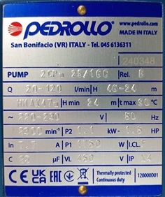 PEDROLLO รุ่น 2CPM25/16C(2CPM25/140M)