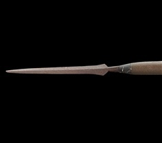 หอกไทยโบราณ หอกชวา ทรงใบข้าว แสดงถึงงานสกุลช่างทางใต้สมัยก่อน ปลายแหลม มีรายละเอียดคมชัดสวย เข้มขลัง มรดกตกทอดจากรุ่นสู่รุ่น มาพร้อมด้ามไม้เนื้อแข็งนับว่าหายากยิ่ง ปกติจะพบเจอเฉพาะใบหอกเท่านั้น