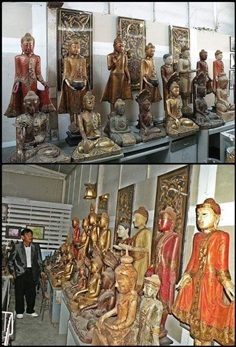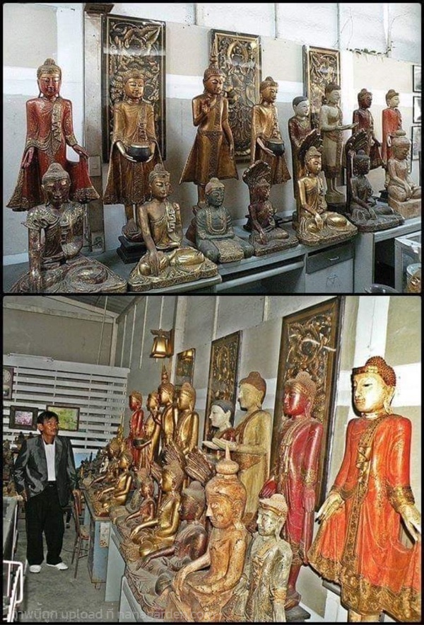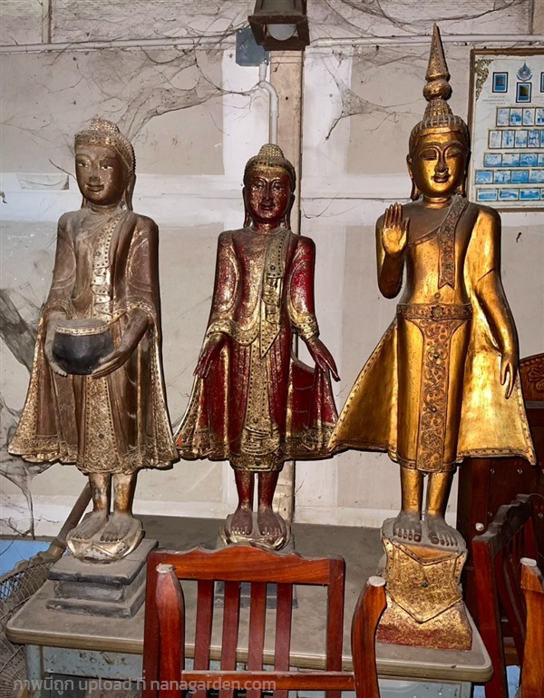 พระพุทธรูปไม้ศิลปะพม่า - พุกาม (ล้านนา) อัญมณีเม็ดงามแห่งลุ่มน้ำอิระวดี พระไม้โบราณ สมัยมัณฑะเลย์ งานฝีมือสกุลช่างชาวล้านนายุคเก่า ลงรักแต่งองค์ สีขาว