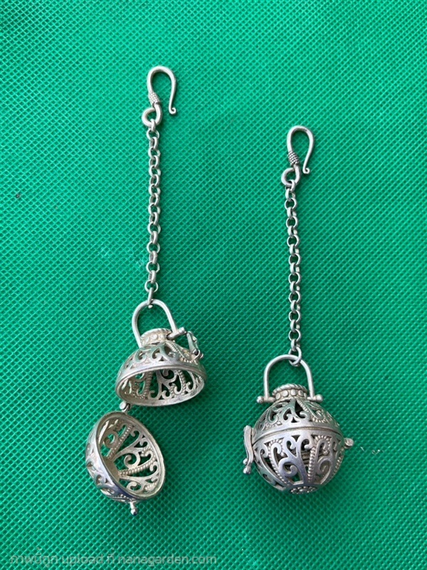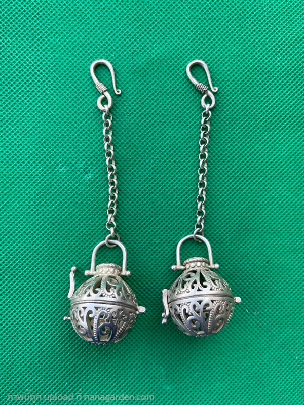 เปิดสะสม ตะกร้อใส่ลูกอม ตลับเงินใส่ลูกอมชานหมาก ลายฉลุ ลวดลายไทย เนื้อเงิน มีตัวล็อค พร้อมสายเหน็บ