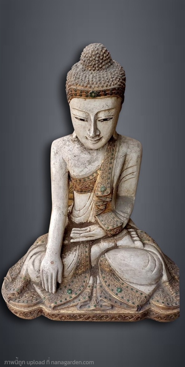 พระพุทธรูปไม้ศิลปะพม่า - พุกาม (ล้านนา) อัญมณีเม็ดงามแห่งลุ่มน้ำอิระวดี พระไม้โบราณ สมัยมัณฑะเลย์ งานฝีมือสกุลช่างชาวล้านนายุคเก่า ลงรักแต่งองค์ สีขาว