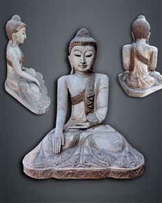 พระพุทธรูปไม้ศิลปะพม่า - พุกาม (ล้านนา) อัญมณีเม็ดงามแห่งลุ่มน้ำอิระวดี พระไม้โบราณ สมัยมัณฑะเลย์ งานฝีมือสกุลช่างชาวล้านนายุคเก่า ลงรักแต่งองค์ สีขาว