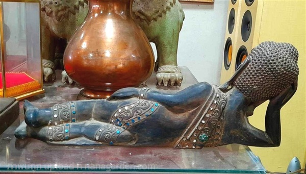 เปิดบูชา พระพุทธรูปไม้แกะสลัก ศิลปะมัณฑะเลย์ ประเทศพม่า พระไม้โบราณ อายุกว่า60ปี (พุทธศตวรรษที่25) ปางไสยาสน์ แกะสลักจากไม้สักท่อนเดียว