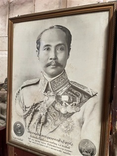 เป็นงานจิตกรรม ภาพเขียนมือ ที่สื่อถึงประเพณีไทยโบราณ ซึ่งแสดงถึงฉากรบด้วยช้างศึกกลางสนามรบ เป็นงานศิลปะไทยดั้งเดิม อยู่ในกรอบสีแดง โดยมีลายเซ็น “Chian” อยู่ที่มุมขวาล่าง