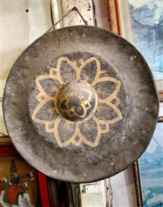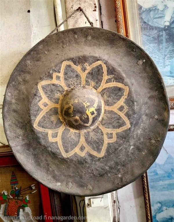เปิดสะสม ฆ้องโบราณ เนื้อทองเหลือง แบบมีปุ่ม ขนาดหน้ากว้าง18นิ้ว สภาพสวยสมบูรณ์ อายุยาวนานกว่า30ปี งานเก่าเก็บสะสม บางพื้นที่จะเรียกว่า “ลูกโหม่ง”