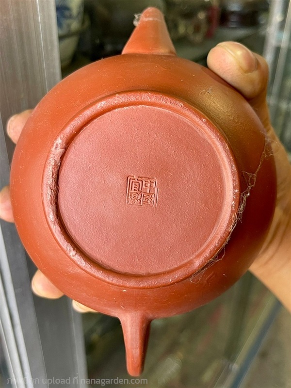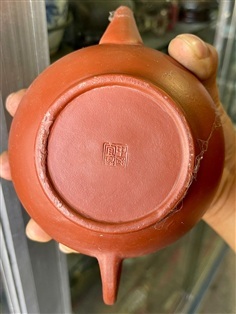 กาชงน้ำชาดินเผา (ปั้นชา) ต้นดำเนิดจากเมืองอี๋ซิง Yixing มณฑลเจียงซู ประเทศจีน กาน้ำชาเก่าสะสม สีส้มดินแดง ทรงกลมมนคล้ายลูกส้มโอ ไม่เคลือบผิว ขนาดกลาง เป็นงานละเอียด ปราณีต ซึ่งต้องใช้ระยะเวลาและฝีมือ ใต้ฐานตีปั๊มตราภาษาจีน บ่งบอกถึงผู้จัดสร้าง เมืองอี๋ซิง (มณฑลเจียงซู ประเทศจีน)