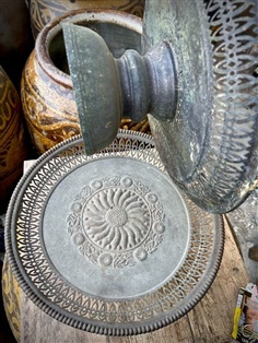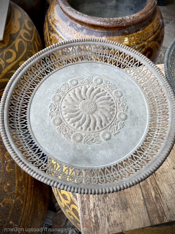 เปิดสะสม พานทองเหลืองโบราณ พานทองเหลืองเก่า ลายดอกทานตะวัน ขนาดกว้าง 12นิ้วครึ่ง สภาพสวยสมบูรณ์ ทำจากทองเหลืองแท้ ลายฉลุ