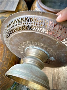 พานทองเหลือง (พานโตกทองเหลืองโบราณ) ขนาด12นิ้ว งานเก่าสะสม อายุยาวนาน เก็บไว้ไม่ได้ใช้งาน ขอบข้างเป็นลายฉลุ สามารถนำไปขัดขึ้นเงาได้ เป็นพานทองเหลืองโบราณ หล่อหนา ลายดอกไม้ อายุกว่า50ปี ทนต่อการใช้งาน