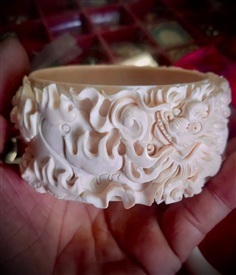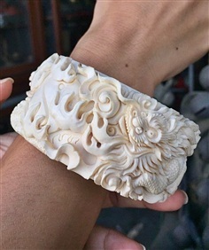 กำไลงาแกะ กำไลงาช้างแกะสลัก รูปเสือและมังกร วงใหญ่