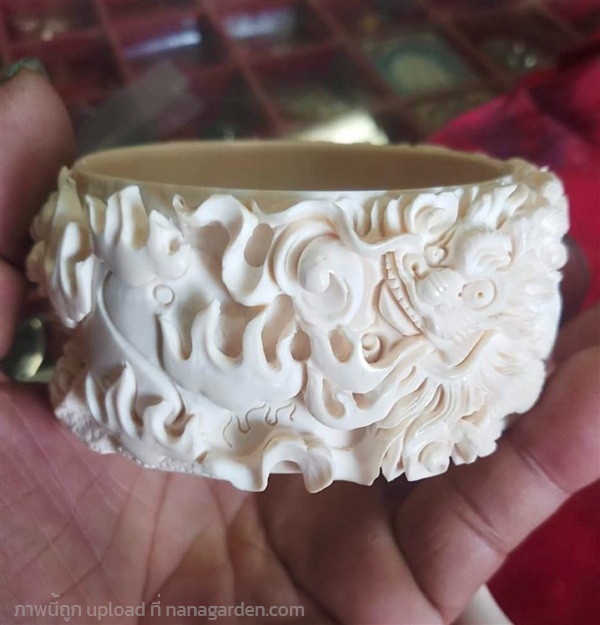 โคนงาแกะสลัก ชิ้นใหญ่ งานเก่าเก็บสะสม กำไลประเภทนี้นิยมสวมใส่โชว์ออกงาน สภาพสวยสมบูรณ์ แข็งแรง งานฝีมือปราณีต ละเอียดคมชัด มีเอกลักษณ์ไม่เหมือนใคร เป็นงานสั่งทำโดยช่างนครสวรรค์ นานๆถึงจะมีให้เห็น