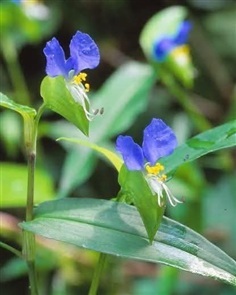 ดอก: ออกเป็นช่อกระจุกตามซอกใบ กลีบดอกมี 3 กลีบ สีม่วงน้ำเงินหรือสีมม่วงคราม