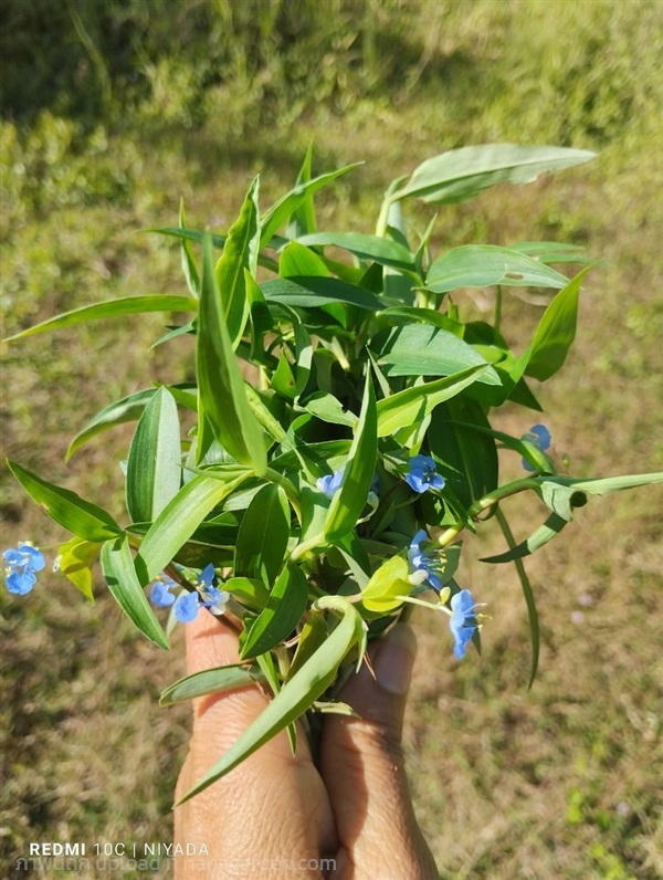 #ผักปลาบใบแหลม (หรือมักเรียกว่า ผักปลาบใบแคบ) มีชื่อวิทยาศาสตร์ว่า Commelina diffusa Burm. f. เป็นพืชล้มลุกในวงศ์ Commelinaceae มีลักษณะเด่นที่ใบเรียวแหลมและดอกสีฟ้าอมม่วง มักพบขึ้นตามพื้นที่ชุ่มน้ำและที่ชื้นแฉะทั่วทุกภาคของประเทศไทย