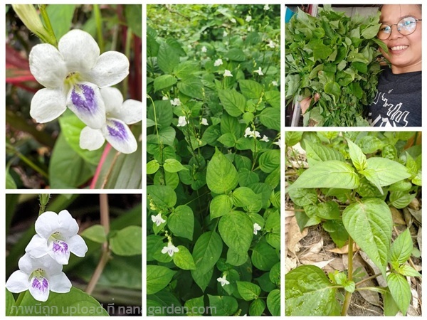หญ้าใบพริก อ่อมแซบตัวผู้ Asystasia gangetica subsp. อยู่ในพืชสกุลเดียวกันกับเบญจรงค์ 5 สีที่เรียกว่าอ่อมแซ่บตัวเมีย อ่อมแซบตัวผู้หรือหญ้าใบพริกนี้จะมีดอกที่เล็กกว่าปลูกเพื่อคลุมดินปลูกเพื่อประดับตกแต่ง ปลูกเพื่อปรับปรุงดินคลุมวัชพืชอื่น ยอดอ่อนสามารถรับประทานได้แต่ไม่เป็นที่นิยมเทาอ่อนแซ่บตัวเมีย ใบสามารถรับประทานได้แบบผักทั่วไป ยอดอ่อนลวกจิ้มน้ำพริกหรือใส่ในแกง ใบอ่อนยังเป็นอาหารของผีเสื้อใช้เป็นอาหารของหนอนไหมเป็นอาหารเสริมของผู้ที่เลี้ยงหม่อนเลี้ยงไหมปกติแล้วหนอนไหมจะกินใบหม่อนแต่ก็จะมีอาหารเสริมเป็นจำพวกใบละหุ่งหรือใช้ใบของหญ้าใบพลิกหรือใช้ใบของอ่อมแซ่บก็ได้ค่ะเลี้ยงหนอนไหม