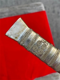 เป็นมีดหมอเก่า ปลอกและฝักเนื้อเงินหุ้มไม้ ลายฉลุ สภาพสวยสมบูรณ์ (สร้างตามตำราพระเจ้านั่งข่ม) ฝีมือชั้นครูโดยช่างสล่าล้านนา มีอัตลักษณ์ลวดลายคมชัดสวยงามที่ไม่เหมือนใคร ใบมีดเป็นเหล็กคุณภาพดีเยี่ยม โดยแต่ละด้ามต้องใช้เวลาและความพยายามเพื่อให้ได้งานที่ละเอียดปราณีต