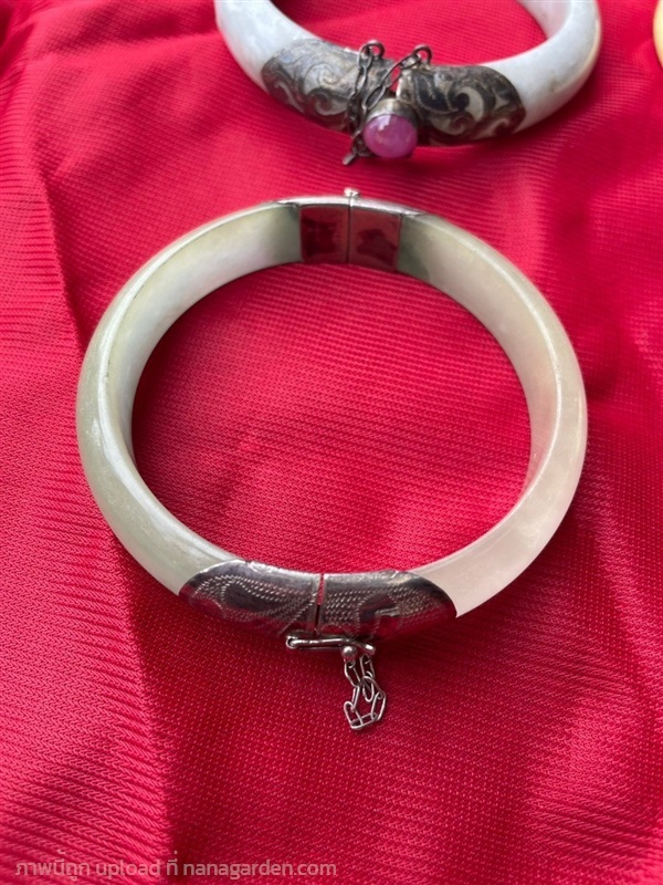 เปิดสะสม กำไลหยก กำไลหยกโบราณ ข้อต่อเนื้อเงินแกะ งานเก่าสะสม อายุหลายปี สภาพสวยสมบูรณ์ ไม่ผ่านการใช้งาน