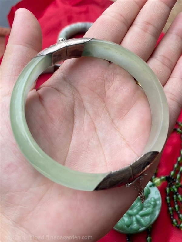 กำไลหยก สีเขียวอ่อน ข้อต่อเนื้อเงิน กำไลหยกโบราณ