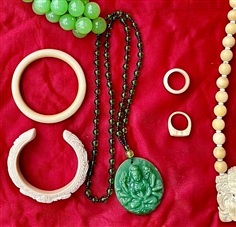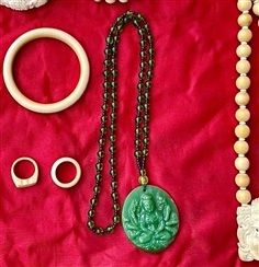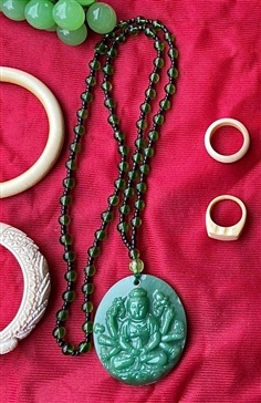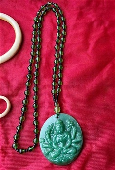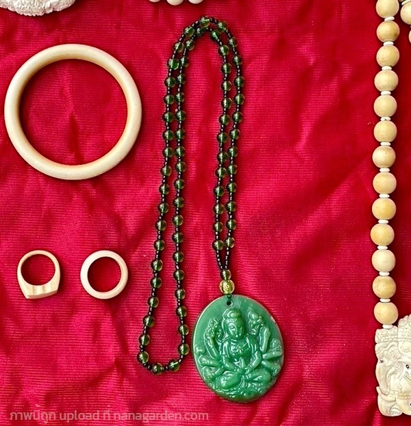 เปิดสะสม จี้หยกกวนอิม พร้อมสร้อยลูกปัด สีเขียวมรกต ของเก่าสะสม อายุหลายปี