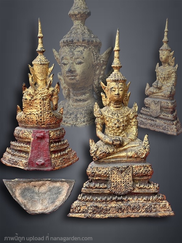พระรัตนะ เป็นพระพุทธรูปที่แสดงถึงความเจริญรุ่งเรืองของพุทธศาสนาในสมัยนั้น ศิลปะรัตนะโกสินทร์ตอนต้น รูปปั้นพระพุทธรูป (ทรงเครื่องจักรพรรดิ์) งานหล่อโลหะสำริดโบราณ ปางสมาธิ อุ้มบาตร (รับเครื่องถวาย) ใต้ฐานดินไทย อายุงานหลักร้อยปี ค้นพบตั้งแต่ปีพ.ศ. 2325-2500