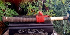 เป็นมีดหมอเก่า ปลอกเนื้อเงินลายฉลุหุ้มไม้ ด้ามกระดูก ติดเชือกแดงสำหรับห้อยแขวน สภาพสวยสมบูรณ์ (สร้างตามตำราพระเจ้านั่งข่ม) ฝีมือชั้นครูโดยช่างสล่าล้านนา มีอัตลักษณ์ลวดลายคมชัดสวยงามที่ไม่เหมือนใคร ใบมีดเป็นเหล็กคุณภาพดีเยี่ยม โดยแต่ละด้ามต้องใช้เวลาและความพยายามเพื่อให้ได้งานที่ละเอียดปราณีต
