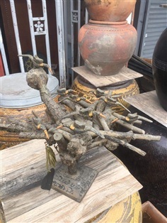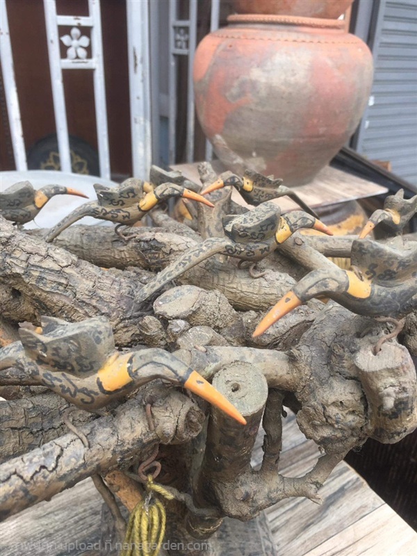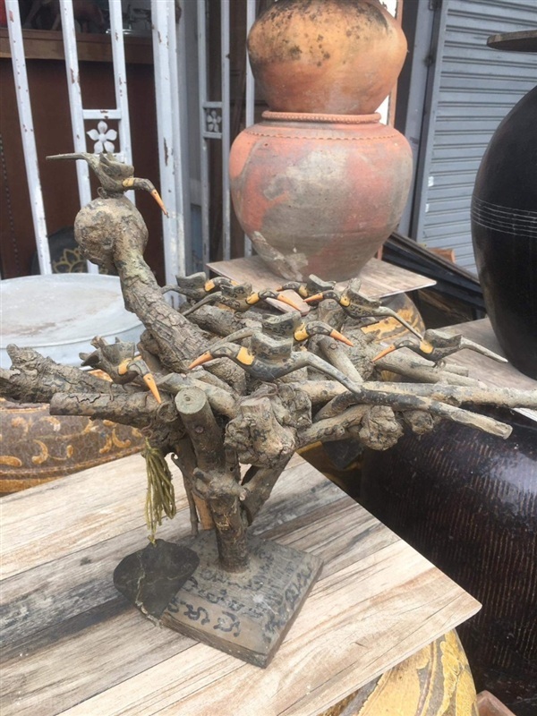 ช่อไม้กาฝากเพกา ประดับด้วยฝูงนกสาริกา (นกคุ้ม) ของเก่า ยุคต้น จารย์อักขระโดยรอบทั้งชิ้น ช่อใหญ่ เข้มขลังอลังการ งานเก่าสะสมอายุหลายสิบปี มีเอกลักษณ์เฉพาะตัวที่ไม่เหมือนใคร