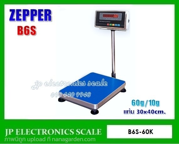 เครื่องชั่งดิจิตอล60kg เครื่องชั่งวางพื้น60kg เครื่องชั่งน้ำหนัก60kg ตาชั่ง60กิโลกรัม กิโลดิจิตอล60kg เครื่องชั่ง60kg ละเอียด 10g ยี่ห้อ ZEPPER รุ่น B6S ขนาดแท่นชั่ง 30*40cm.