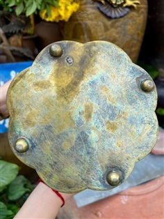 ใบใหญ่ หนา ขนาดกว้างสูง 8x7นิ้ว (น้ำหนักราว35บ. มากกว่า 500กรัม.) ตอกโค๊ตใต้ถัง สภาพสวยสมบูรณ์ โดยภายในบรรจุกาน้ำชาและผ้ารองเก็บความร้อน สไตล์จีนเก่า