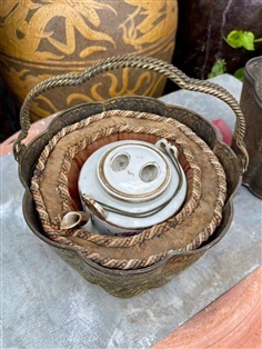 ถังกาน้ำชา แบบเก็บความร้อน เนื้อเงินเก่า อายุงานหลายสิบปี เป็นงานขึ้นรูปด้วยฝีมือช่างชั้นครูของไทยสมัยก่อน ซึ่งต้องใช้ระยะเวลาและประสบการณ์ในการสร้างผลงาน แต่ละชิ้นมีเอกลักษณ์เฉพาะตัวที่ไม่เหมือนใคร