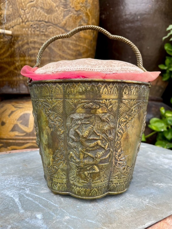 ถังเงินใส่กาน้ำชา ถังเงินโบราณ มีหูหิ้ว ลายกนกไทย