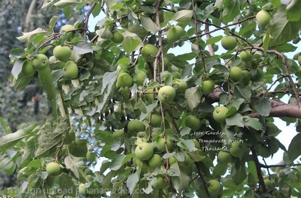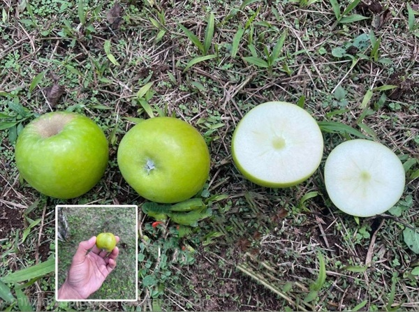 ต้นแอปเปิ้ลป่าเขียว เป็นพันธ์พื้นเมือง ที่ให้ผลผลิตได้ค่อนข้างดีมาก เติบโตไว ลูกไม่ใหญ่ แต่ให้ผลที่ดกมากๆ มีรสชาติหวานอมเปรี้ยว เนื้อกรอบ อร่อย