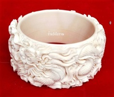 กำไลข้อมืองาแกะ รูปเสือคู่มังกร กำไลงาวงใหญ่