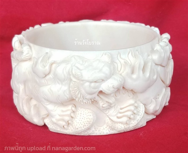 เปิดสะสม กำไลข้อมือ วงใหญ่ กำไลงาแกะสลัก รับประกันแท้ ลายพญาเสือโคร่ง คู่กับพญามังกร งานช่างฝีมือแกะสลัก จากโคนงาชิ้นใหญ่ ขนาดหนากว้างสูง 12x86x39มิล วงใน66มิล