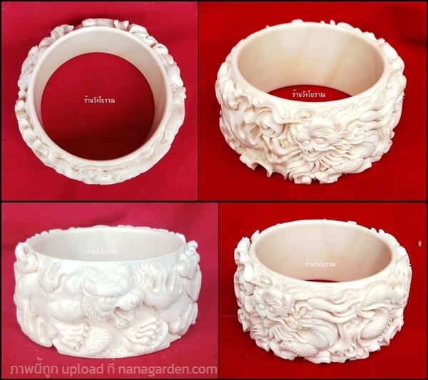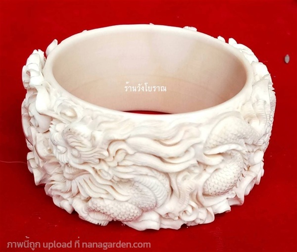 โคนงาแกะสลัก ชิ้นใหญ่ งานเก่าเก็บสะสม กำไลประเภทนี้นิยมสวมใส่โชว์ออกงาน สภาพสวยสมบูรณ์ แข็งแรง งานฝีมือปราณีต ละเอียดคมชัด มีเอกลักษณ์ไม่เหมือนใคร เป็นงานสั่งทำโดยช่างนครสวรรค์ นานๆถึงจะมีให้พบเห็น