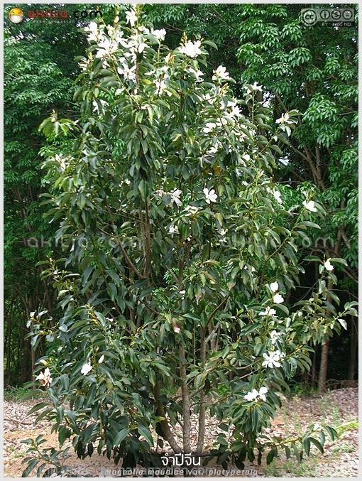 #จำปีจีน มีถิ่นกำเนิดจากประเทศจีนตอนใต้ ถูกนำเข้ามาปลูก และขยายพันธุ์ในประเทศไทยนานกว่า 3 ปีแล้ว ปรากฏว่า สามารถเจริญเติบโต และมีดอกได้ดีไม่แพ้การปลูกในถิ่นเดิม เป็นไม้ในวงศ์ MAGNOLIACEAE ต้นสูง 10 – 20 เมตร ใบเป็นใบเดี่ยวออกเวียนสลับ ใบเป็นขนาน ปลายใบแหลม โคนใบเกือบมน ใบมีขนาดใหญ่ สีเขียวสด เวลาใบดกจะน่าชมมาก แก้ไขข้อมูลเมื่อ 25 ม.ค. 69 11:22