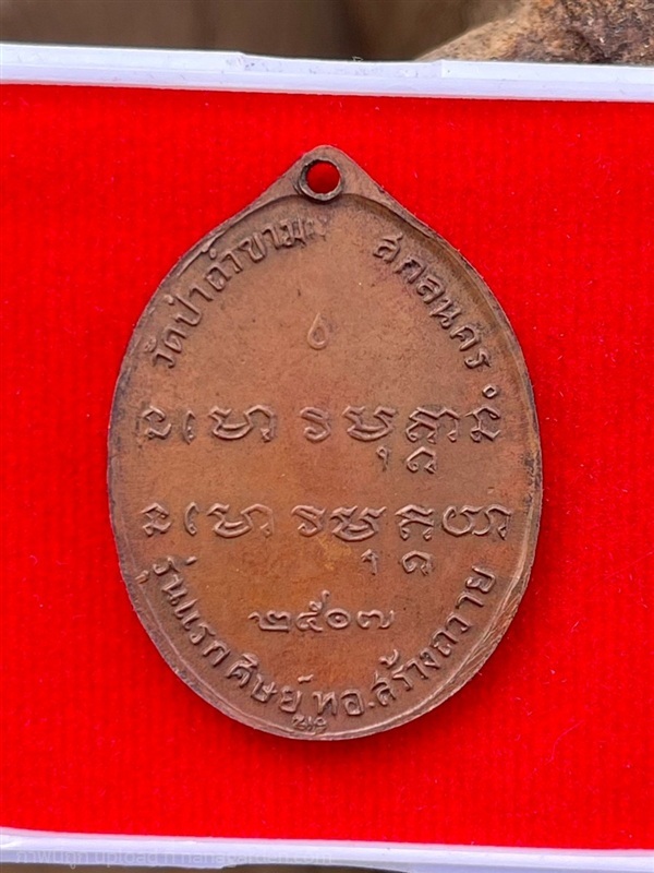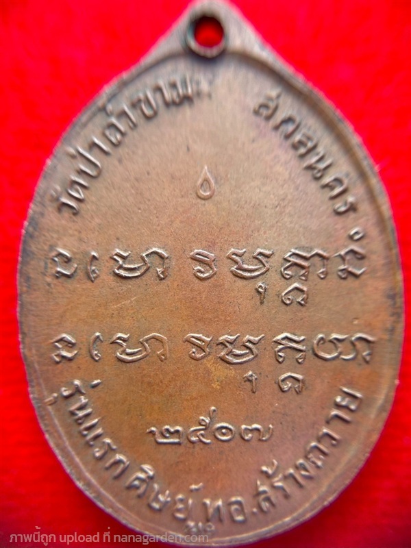 เหรียญรุ่นแรก อาจารย์ฝั้น อาจาโร จัดสร้างในปี ปีพ.ศ. ๒๕๐๗ เนื้อทองแดง จัดสร้างโดย น.อ.เกษม งามเอก วาระเป็นที่ระลึกในงานยกเสาเอกโบสถ์น้ำ วัดป่าอุดมสมพร จ.สกลนคร
