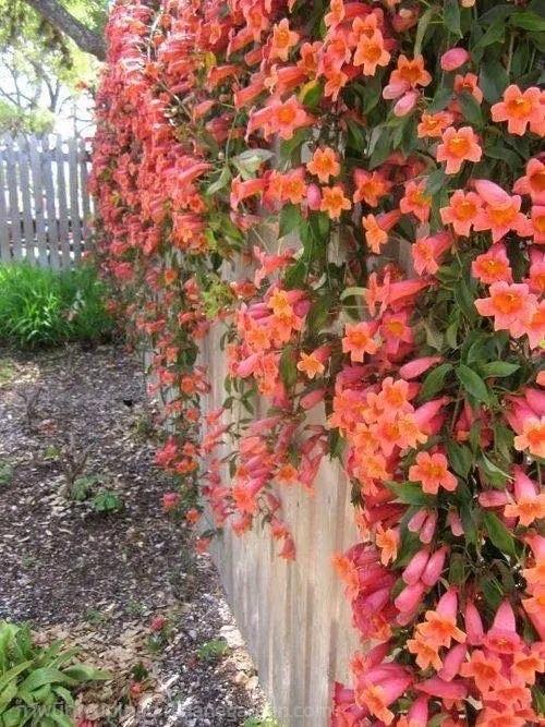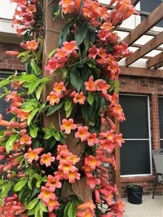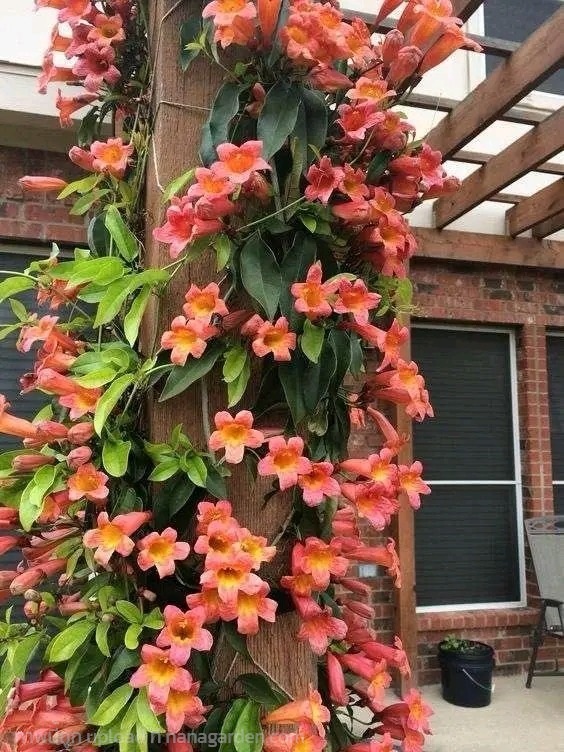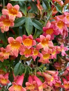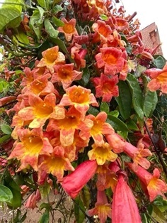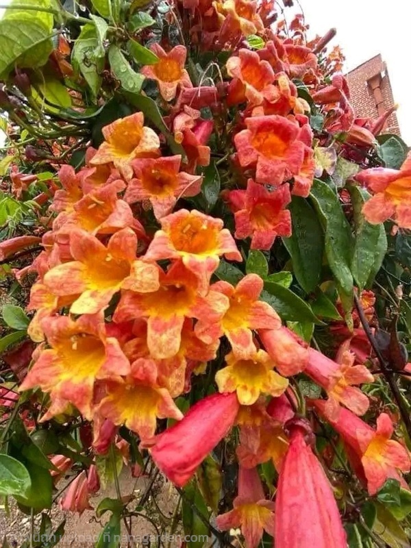 ดอกสีส้มอมชมพูตัดเหลืองสวยมาก เป็นไม้ เถาว์ เลื้อย