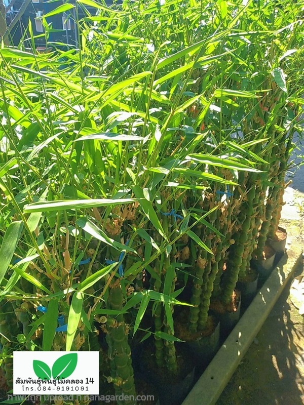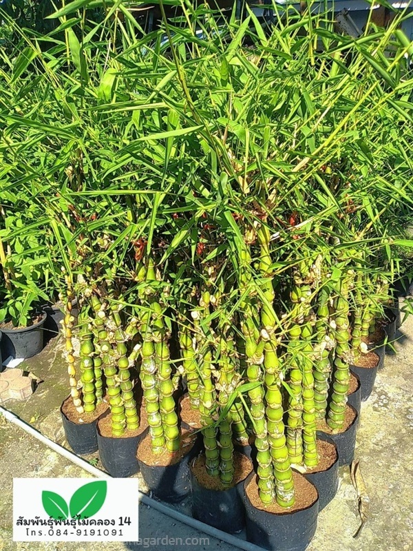 ไผ่น้ำเต้า เป็นไผ่ขนาดเล็กที่โดดเด่นด้วยลำต้นปล้องล่างโป่งพองคล้ายน้ำเต้า ปล้องสั้นตั้งตรง นิยมปลูกเป็นไม้ประดับมงคล เชื่อว่าปลูกแล้วจะช่วยเรียกทรัพย์ แก้ฮวงจุ้ย ให้โชคลาภและความสุขแก่ผู้อยู่อาศัย เหมาะสำหรับจัดสวนลงกระถางหรือทำแนวรั้ว ทนแดดจัดและทนแล้งได้ดี