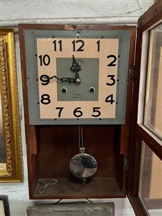 นาฬิกาไขลานแบบโบราณ สี่เหลี่ยม หน้าปัดเดิม ลายละเอียดคมชัด ตัวเรือนอยู่ในตู้ไม้สักแกะสลัก บานไม้อัด เข้ามุมเข้าไม้ประณีต แข็งแรงทนทาน กระจกเดิม รูปทรงสภาพสวย เสียงค้อน เสียงตีไพเราะ คลาสสิคย้อนยุคสมัยก่อน