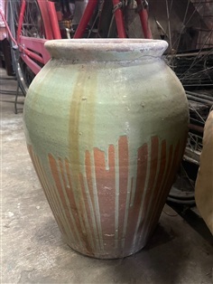 โอ่งแดง น้ำเคลือบครึ่งใบ สีเขียวไข่กา ขนาด55ซม
