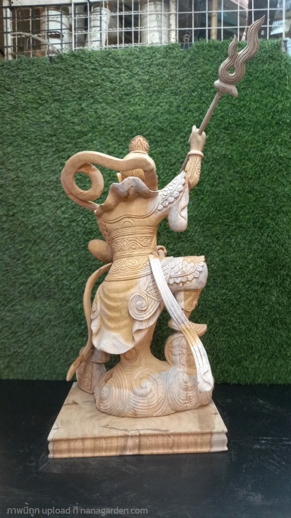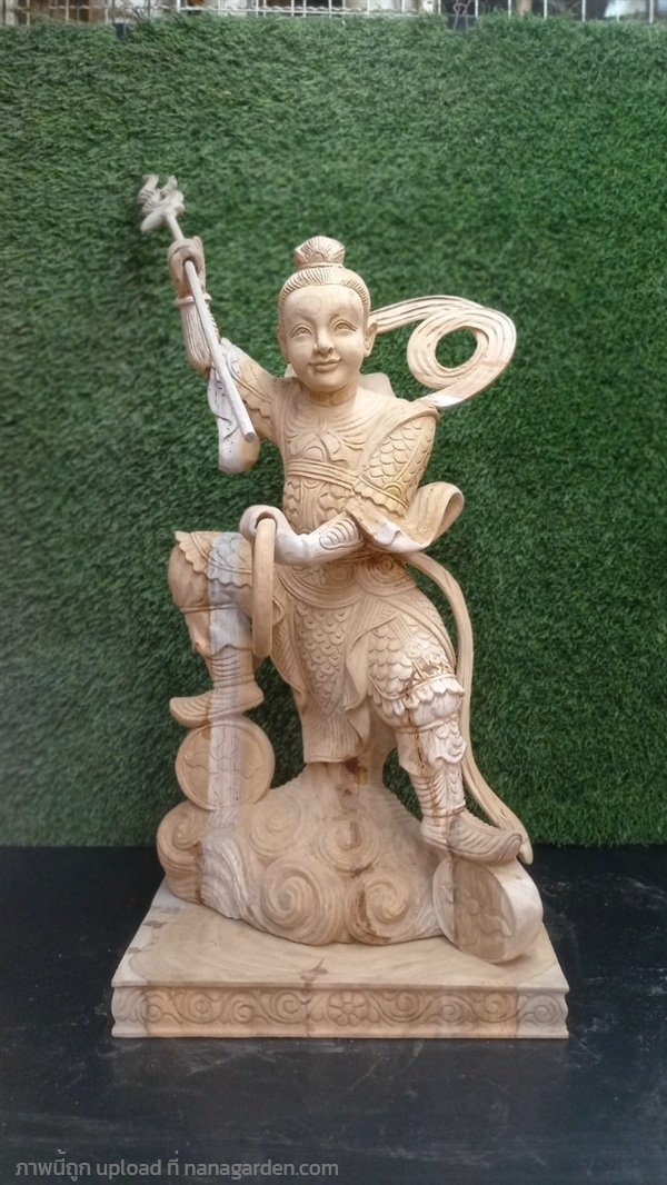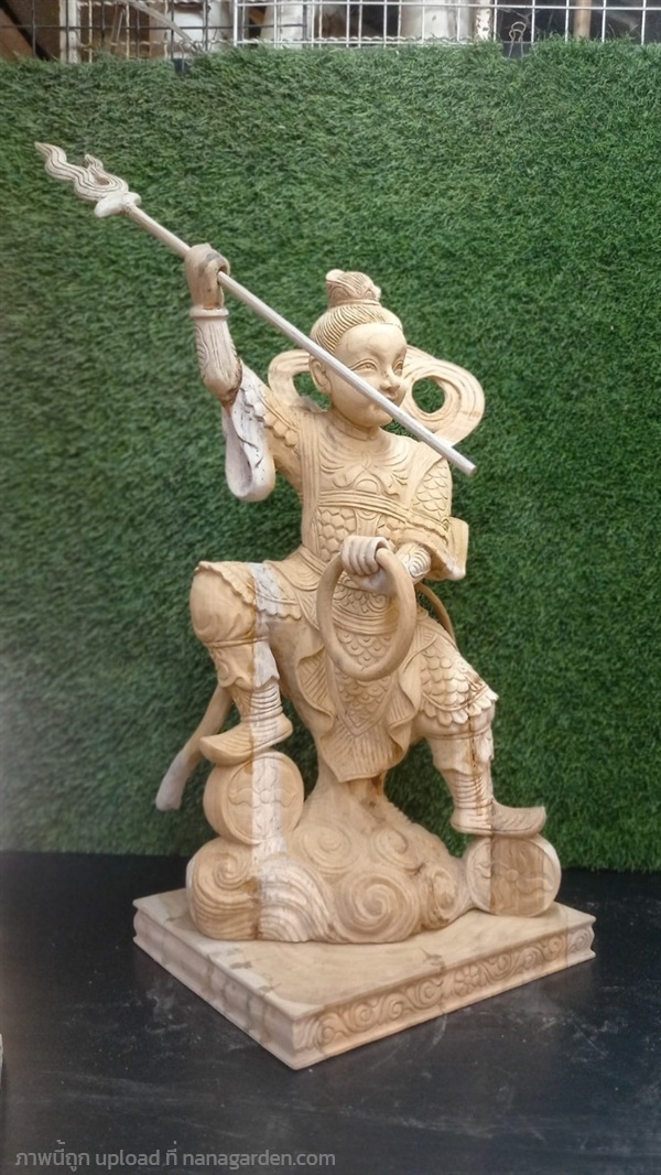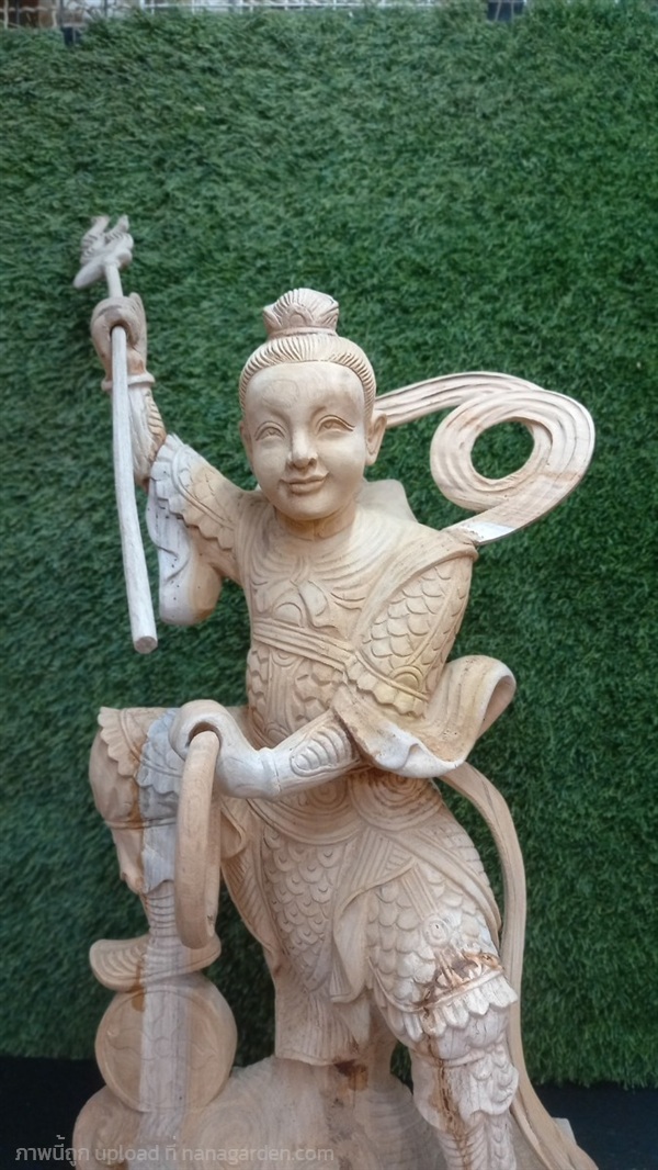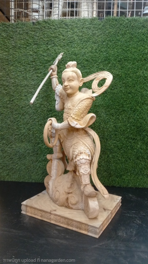 เทพเจ้านาจา นาจาไท้จื้อ (จ่งตั๋น) เป็นเทพผู้พิทักษ์ศาสนาพื้นบ้านของจีน (จอมพลแห่งแท่นบูชากลาง) ในลัทธิเต๋า ฉายา “เจ้าชายบัวองค์ที่สาม” งานแกะสลักจากไม้สักทอง ขนาดสูง24นิ้ว รอลงแลคเกอร์