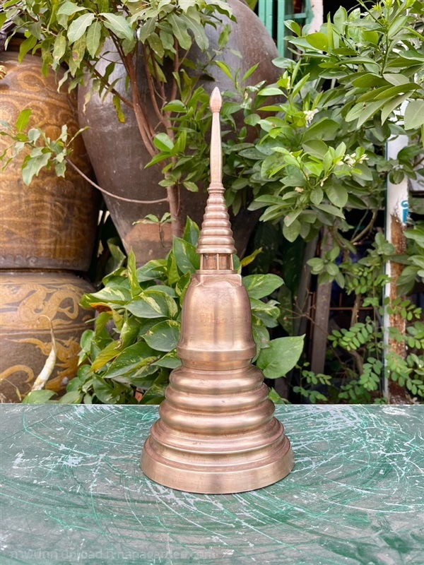 โกศโบราณ ทรงเจดีย์ โกศทองเหลืองโบราณ ขนาดสูง16นิ้ว