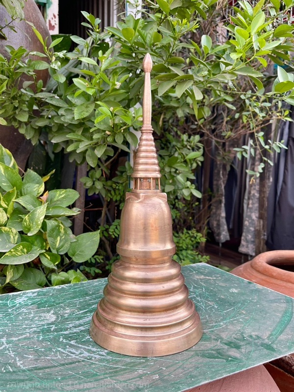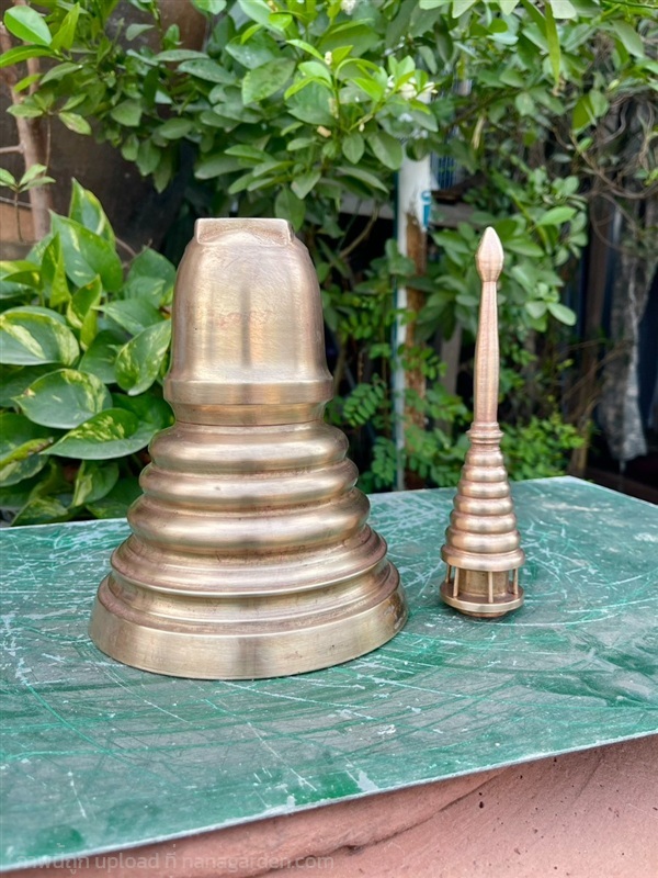 เปิดสะสม โกศทองเหลือง ทรงเจดีย์ ขนาด6.5x15นิ้ว เรียบนูน สภาพสวยสมบูรณ์ครับ ศิลปะ สมัย ร.5